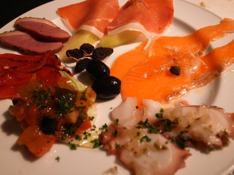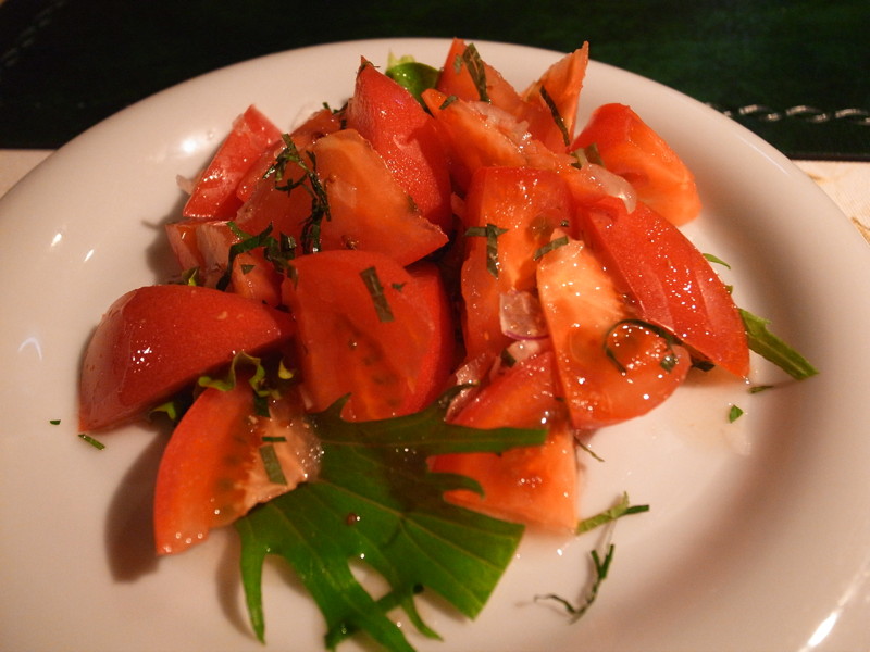 上とすぐ下は前菜の盛り合わせと新鮮なトマトのサラダです。