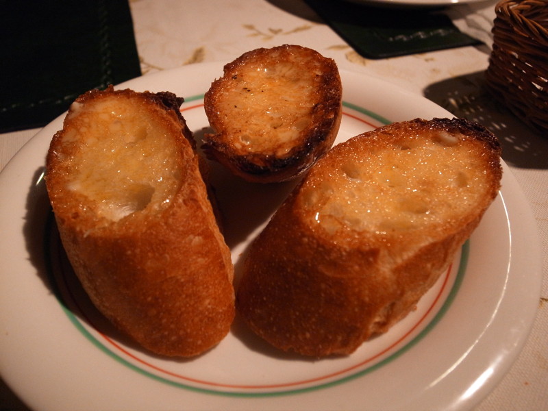 ガーリックトーストには蜂蜜も塗ってあって少し甘くて美味しいです。