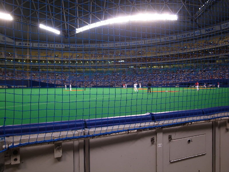 3塁側のエメラルドの最前列の席をペアで5500円でゲットできました。