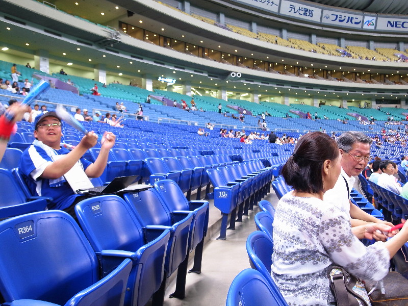 奥さんとふたりで3塁側に行ったり、1塁側の上の方に行ったり