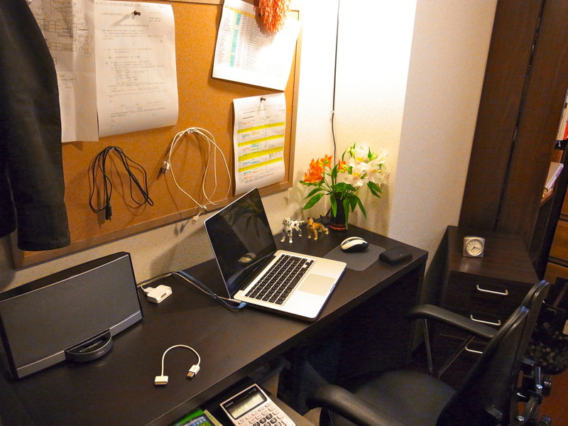 下の画像では、机の前のコルクボードが特徴的です。