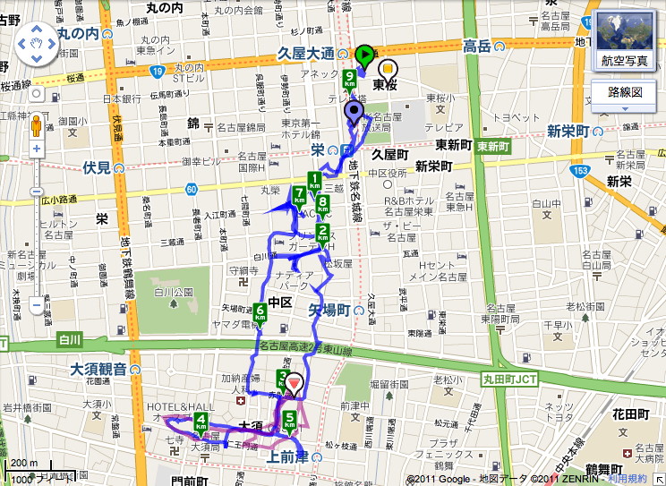 栄の交差点を経由して大津通りを南下してナディアパークへ